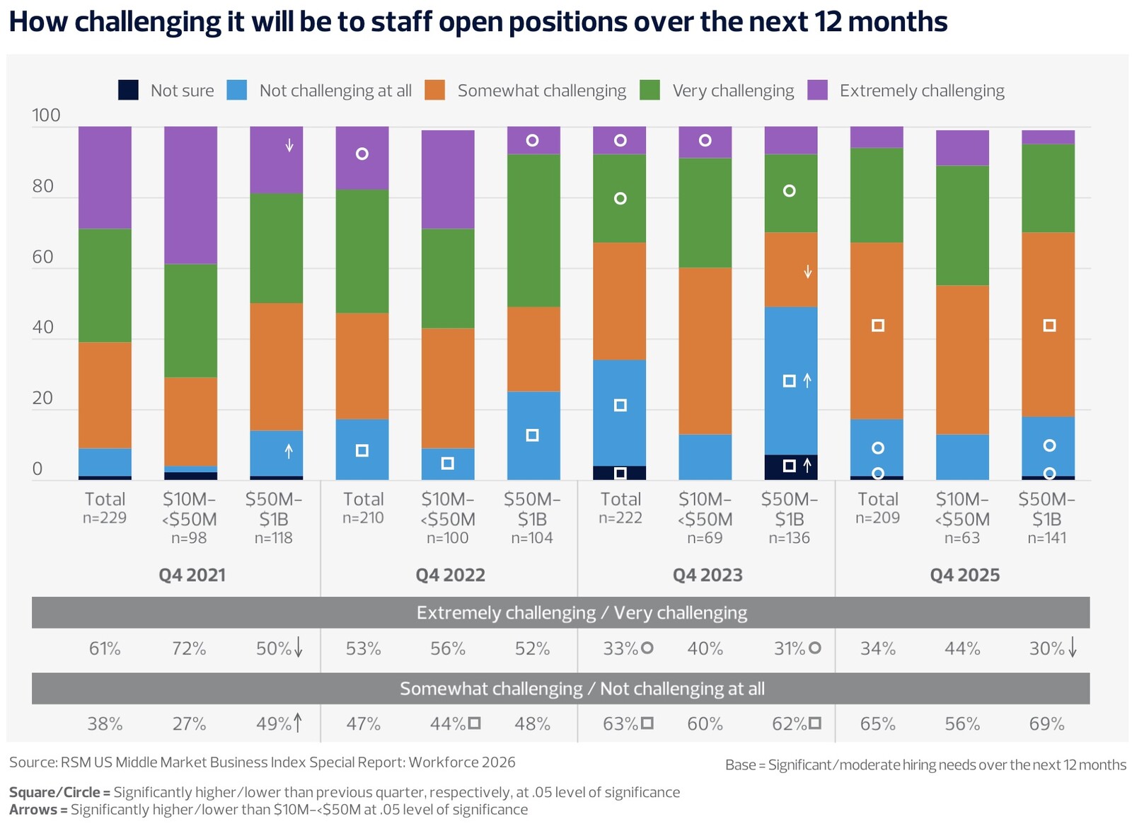 While the U.S. labor market has continued to cool, more than half of middle market executives still anticipate moderate to significant hiring needs over the next year, according to findings from a recent survey by RSM US LLP.